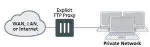 You can configure a FortiGate unit to be an explicit FTP proxy server for FTP users. To use the explicit web proxy, FTP users must connect to and authenticate with the explicit FTP proxy before connecting to an FTP server.
